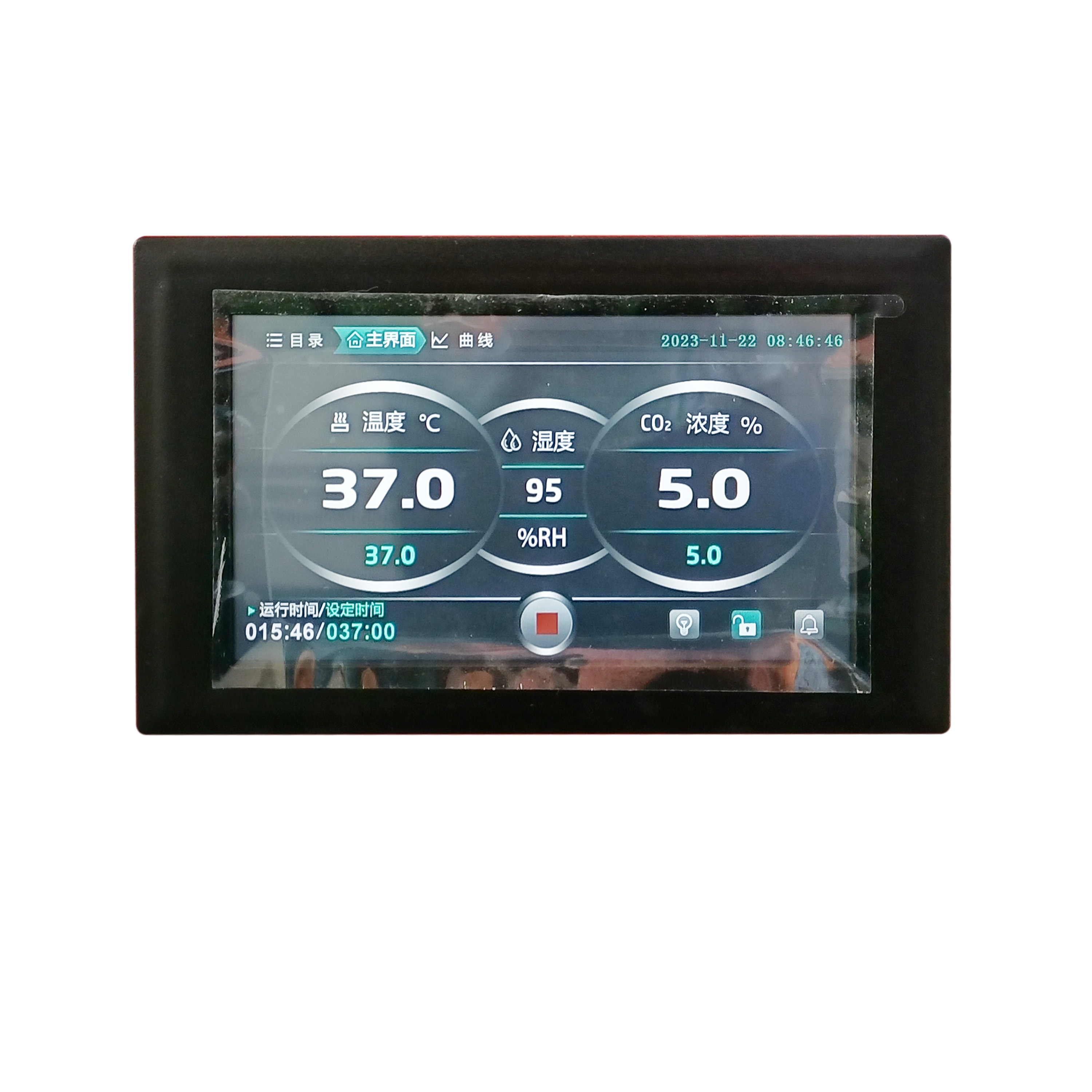 高精度微機控溫儀,控溫精確、工作溫度、CO2濃度任意設定、顯示方式彩色大屏幕液晶操作界面、溫度、CO2濃度、濕度同時顯示