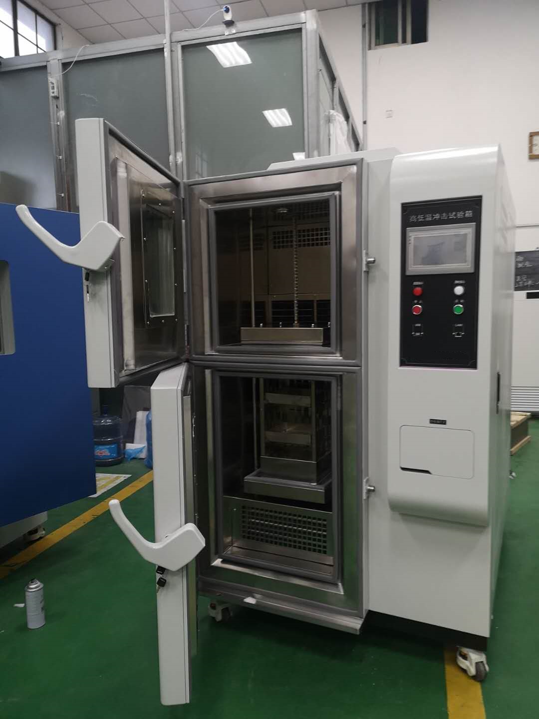 3、在沖擊試驗的冷熱轉換過程中,可快速地恢復至常溫并保持穩定,通過 技術處理避免了箱體內空氣對流和熱輻射對溫度的影響;