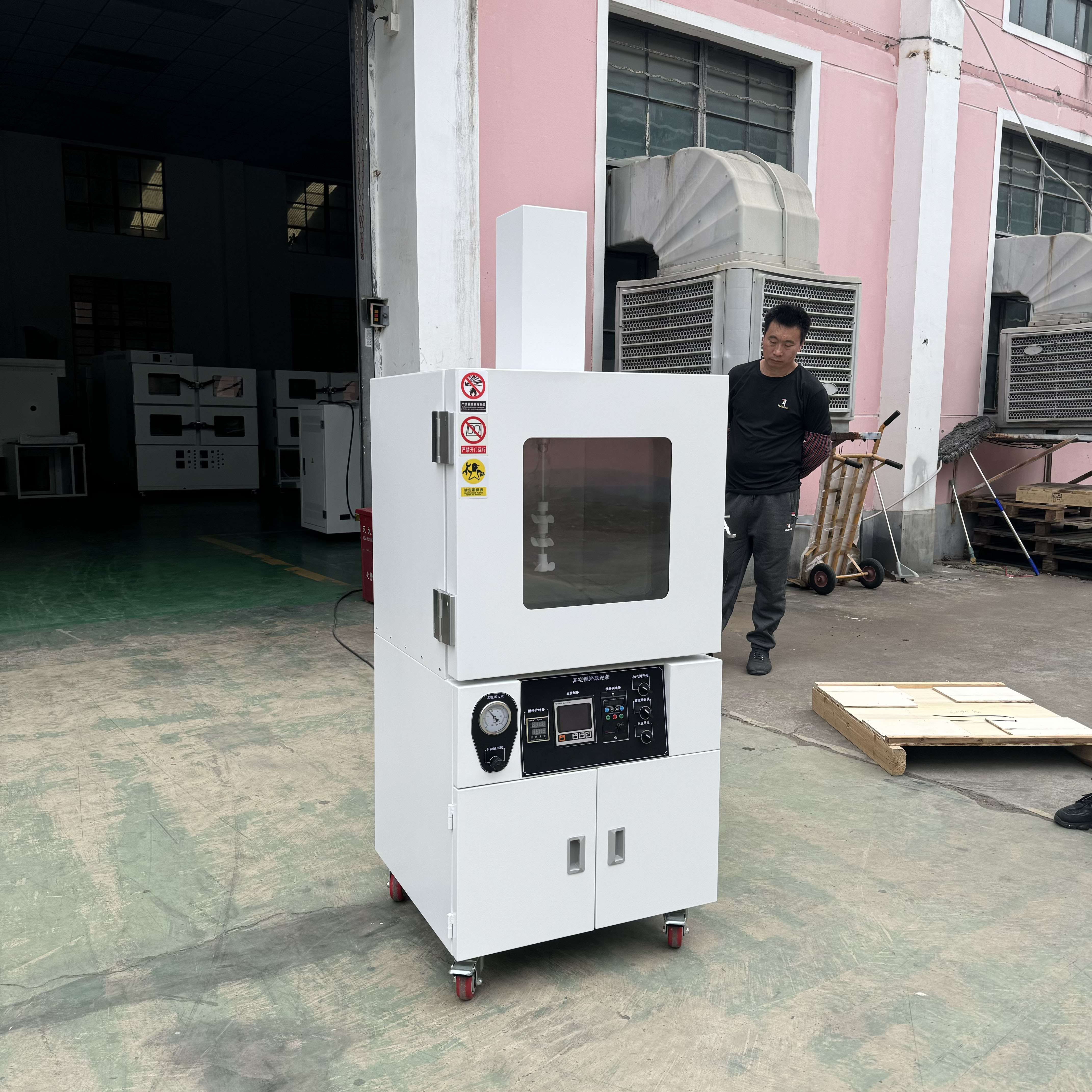 1.立式結構,腔體在上部,儀表在中部,真空泵在下部,底部移動腳輪